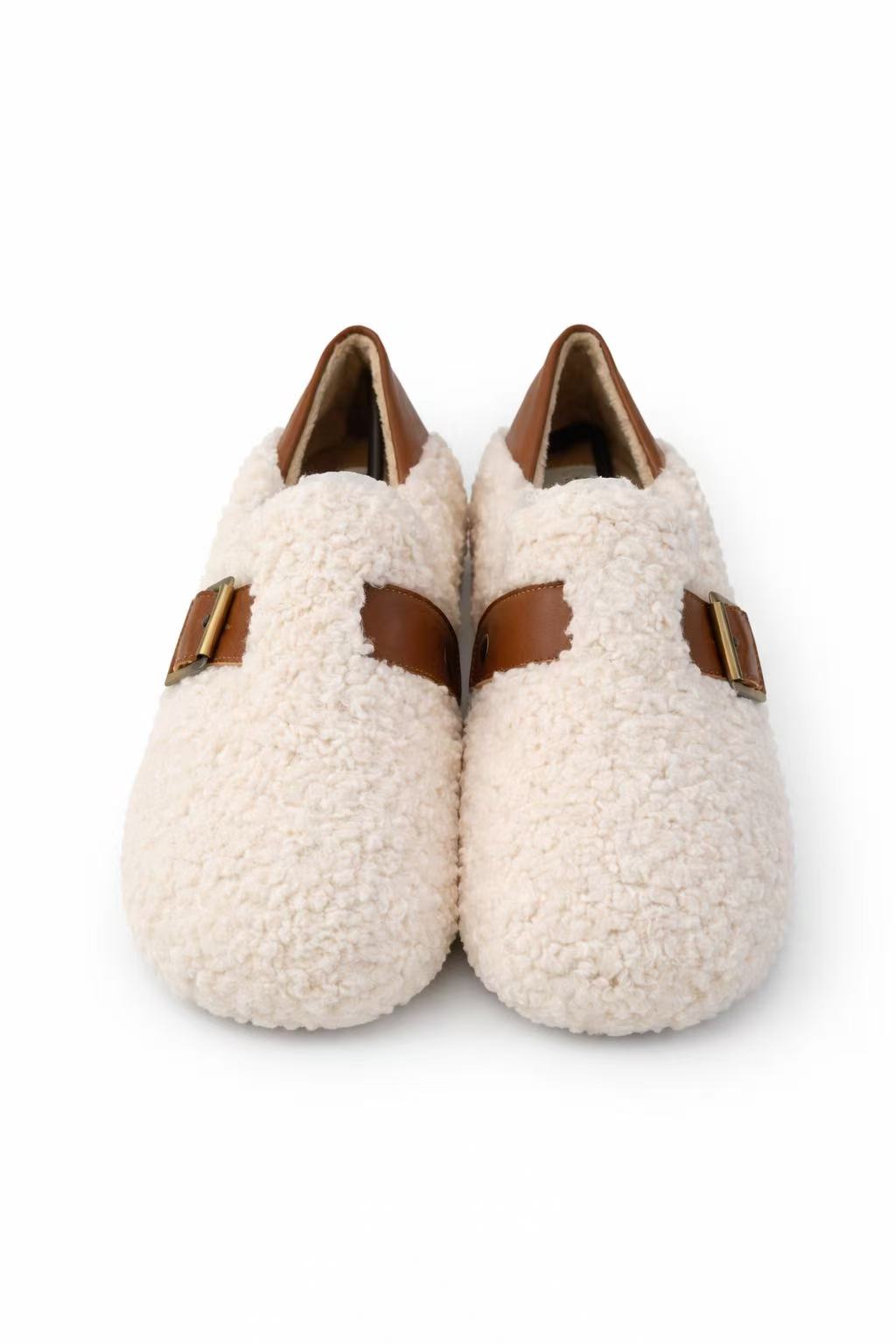 defined by a fully covered silhouette and a rounded, compact form. The classic strap is reinterpreted with a bold, sculptural presence, balancing softness with a grounded, everyday proportion.